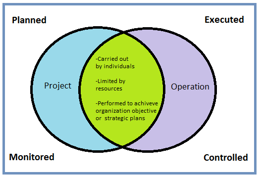 Both projects and operations are carried out by people, both require planning, both require management, and both are constrained by a fixed amount of budget, resources, and timelines.
