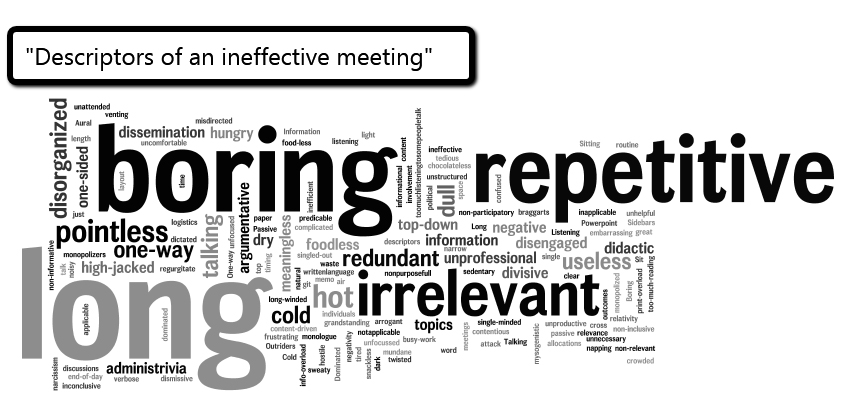 And in the meeting, they talk about any topic that comes to their mind, go off in tangents, and the real topic which was to be solved is often forgotten. Instead the meeting goes on and on, with no clear end, and no clear direction. Then subsequent meetings are called.