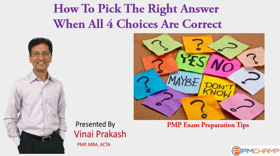 In the PMP exam, it is common that all the 4 given choices for a question may be correct. In such a case, how do you identify the best answer?