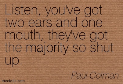 The problem is that we live in a world where everyone is looking for “what’s in it for me?” approach. We spend more time in Facebook, WhatsApp, glued to our iPads, Phones, and the online world, that we have lost touch with humans.shut-up-and-listen